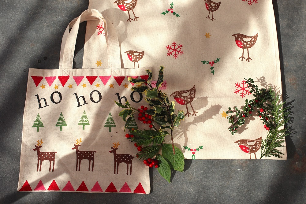 Choose from a beautiful range of winter botanicals and Christmas-themed designs, and personalise your creations with a name or message using custom alphabet blocks. You’ll be using high-quality, washable fabric paints to ensure your handprinted items can be loved and reused year after year.