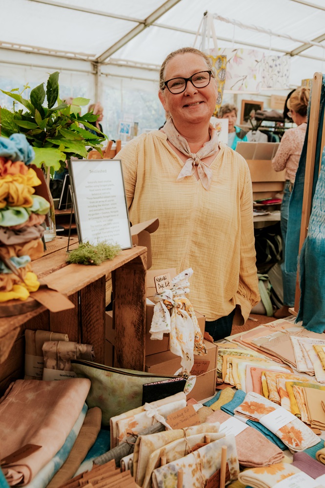 Gathering and foraging plants from around her studio and garden, she stays closely attuned to the rhythms of nature, letting them guide her creative process. As her dyes are drawn from the land around her, each one reflects the changing seasons. From scarves and bags to sewing kits, patchwork, and individually designed fabrics and wall art, each piece is a celebration of craftsmanship, sustainability, and the rich, earthy hues that emerge with natural dyeing techniques. Mary’s work reflects a deep respect for the land, the seasons, and the art of slow, intentional creativity.