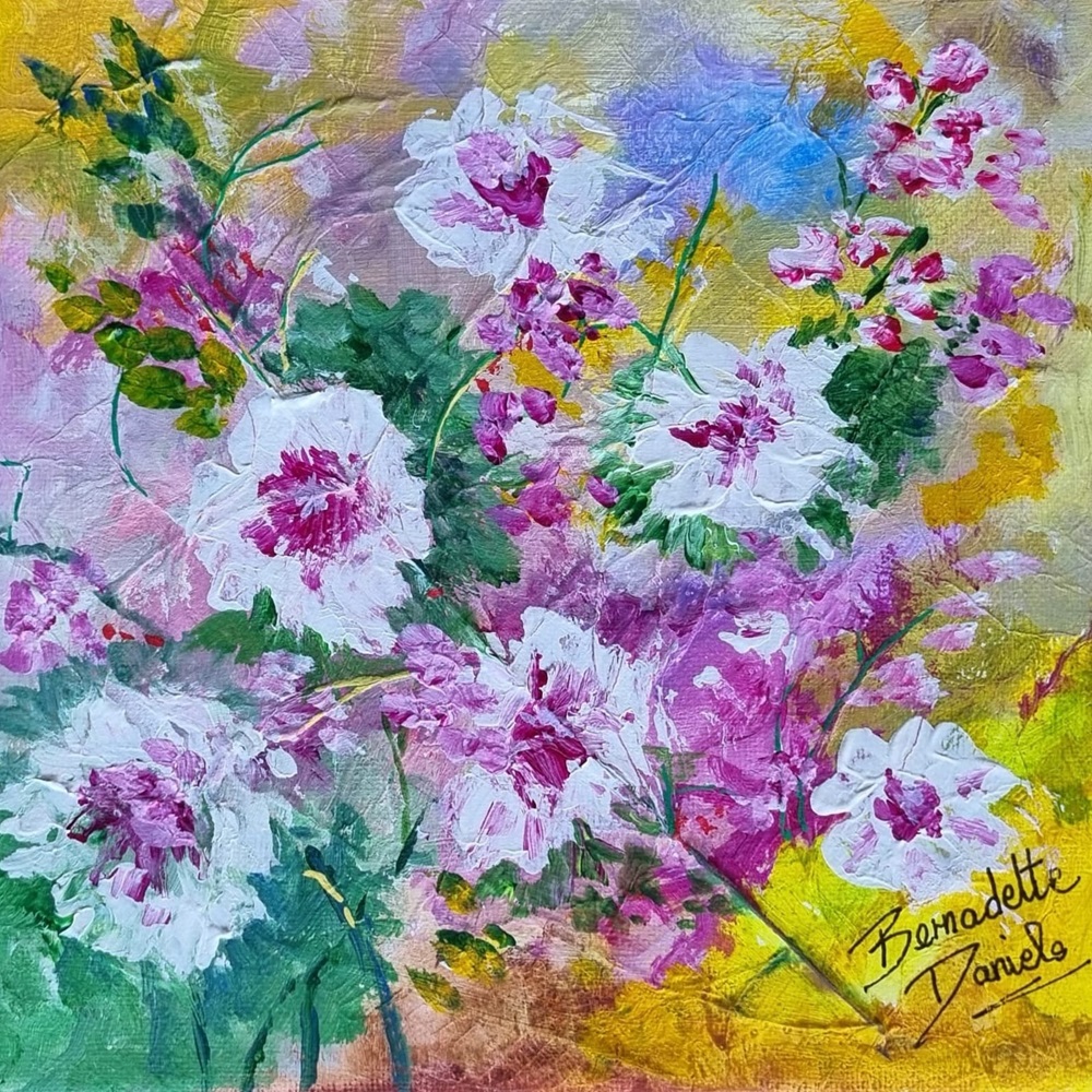 Working across a variety of techniques, including watercolour, acrylic, and mixed media, Bernadette’s artistic journey reflects her enthusiasm and commitment to exploring creative expression.